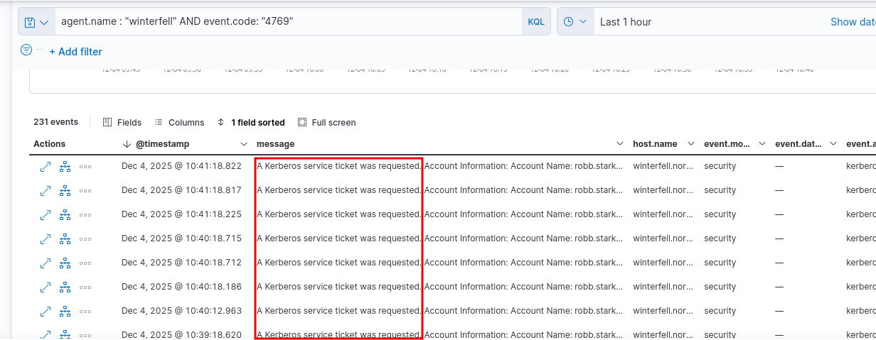 Example of the Loudness of Kerberoasting Large Numbers of Users